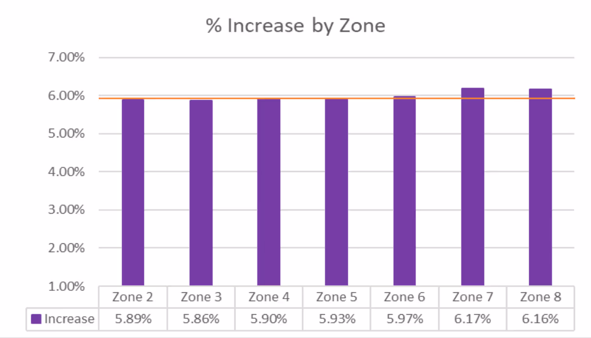 1. Higher long-haul penalties for Zones 7 and 8