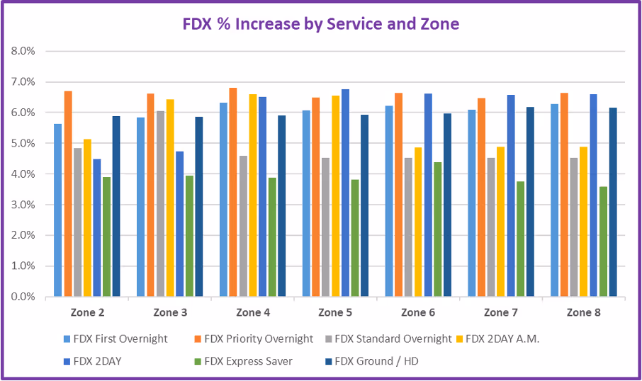 The takeaway for transportation and finance leaders: you cannot apply a 5.9% increase across the board in your budget model. You need to understand where your actual volume sits by service, zone, and weight.
