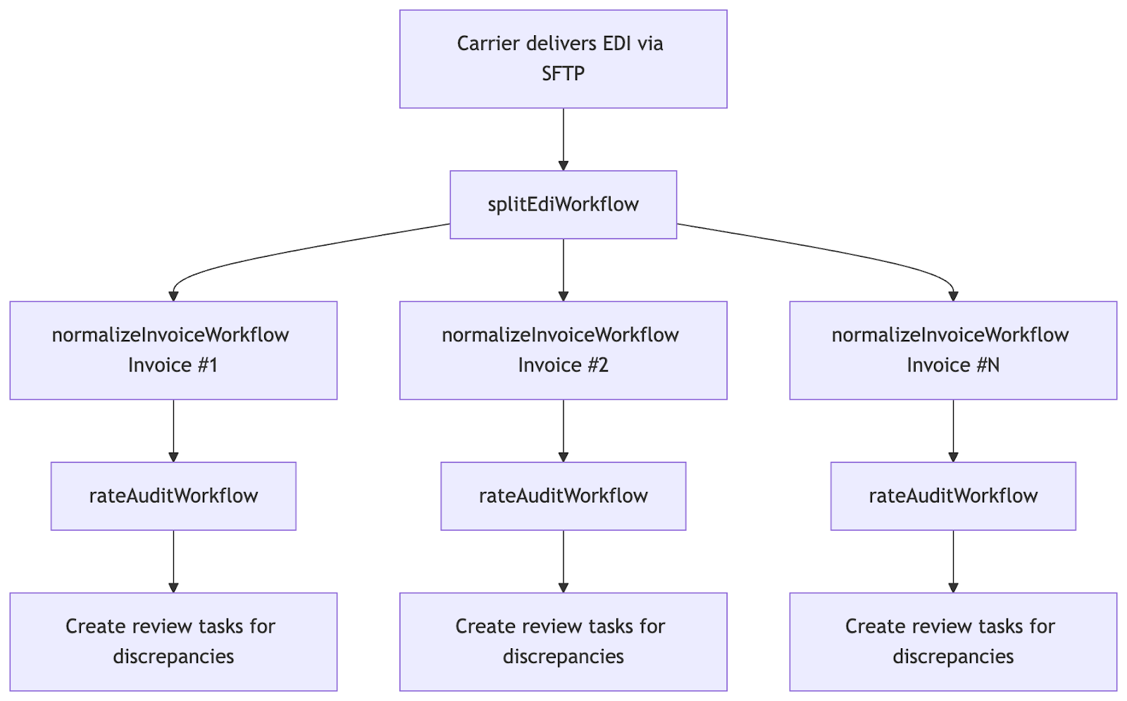 Loop is a logistics data platform company. We ingest invoices from thousands of carriers, normalize them, run audit checks, orchestrate payments, and surface discrepancies to our customers. The business logic is intricate and stateful – you're coordinating across external APIs, databases, S3, Snowflake, and third-party EDI networks, often for operations that take minutes to hours to complete.