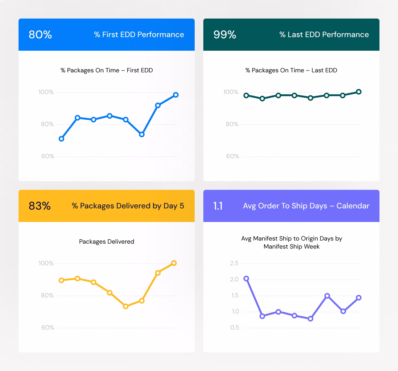With a wide range of custom dashboards and reports, you can track every package in real-time to monitor network velocity, confirm delivery status, and ensure your shipments are moving as promised, regardless of the carrier used.